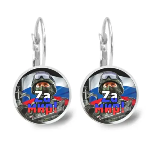 Серьги как сувенирный аксессуар из бижутерного сплава с изображениями под выпуклыми стеклянными линзами.
