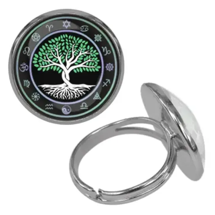 Безразмерное кольцо с изображением двух деревьев, выполненное из бижутерного сплава с покрытием под серебро. Диаметр изображения составляет 18 мм, а выпуклая стеклянная линза придаёт изделию особую выразительность. Упаковка представлена в прозрачном пакете, что делает его отличным вариантом для подарка или личного использования. Это украшение станет символом гармонии и связи с природой, прекрасно дополняя любой образ.