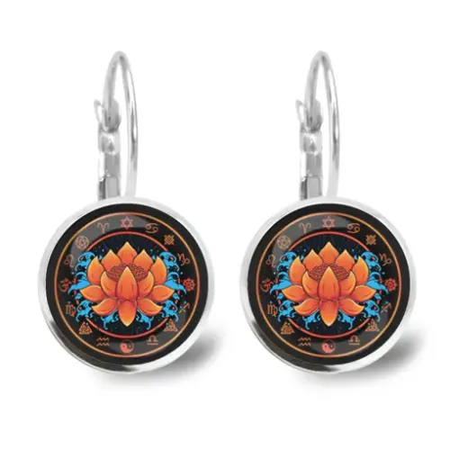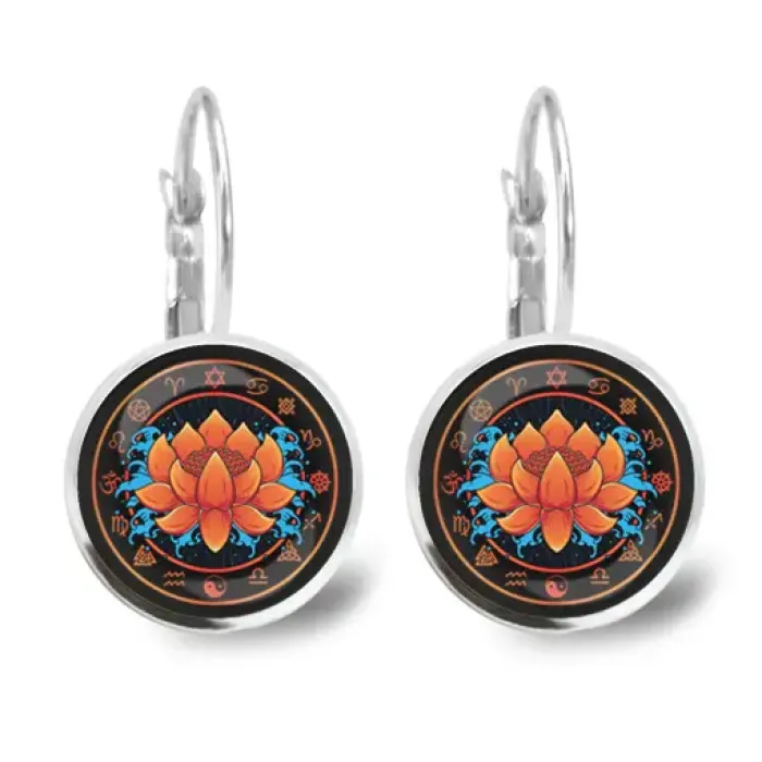 Серьги для ношения. Бижутерный сплав с покрытием под серебро, украшены изображениями под выпуклыми стеклянными линзами.