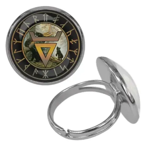 Безразмерное кольцо-сувенир из бижутерного сплава с изображением под выпуклой стеклянной линзой.