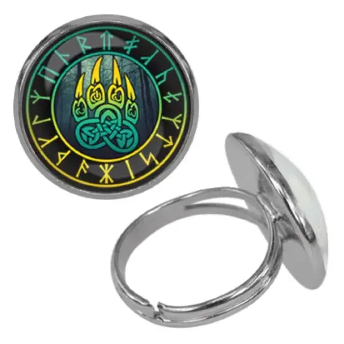 Безразмерное кольцо с изображением под выпуклой стеклянной линзой.
