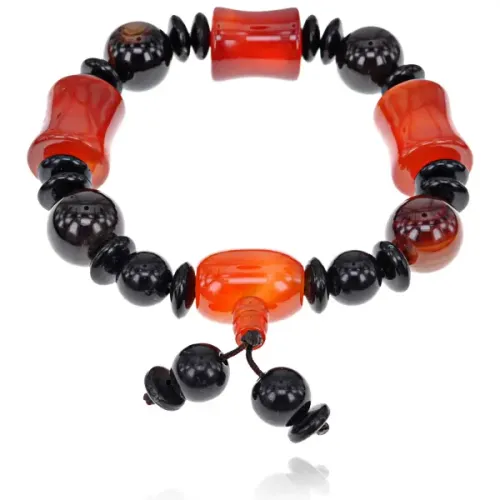 Чётки-браслет из натурального агата с Гуру-бусиной. Ширина браслета составляет примерно 1,5 см.