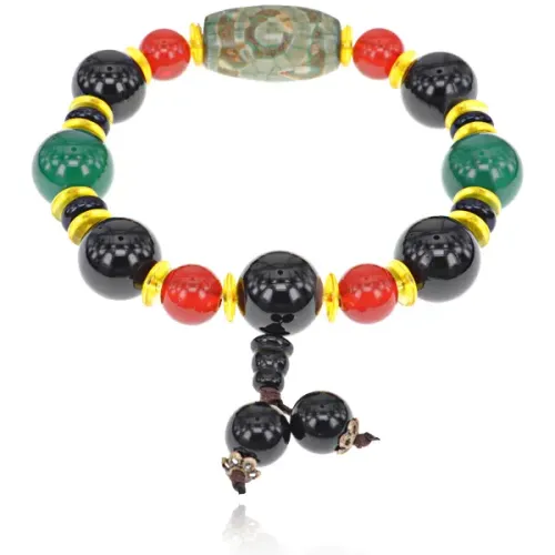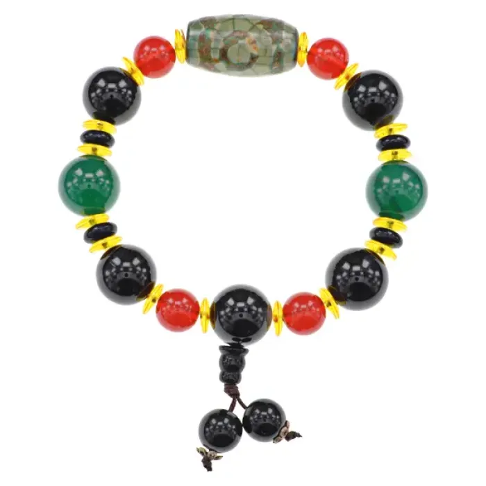 Браслет с бусиной Дзи 3 глаза и Гуру-бусиной, натуральный агат BSDZ-023