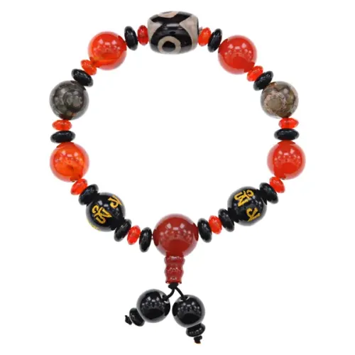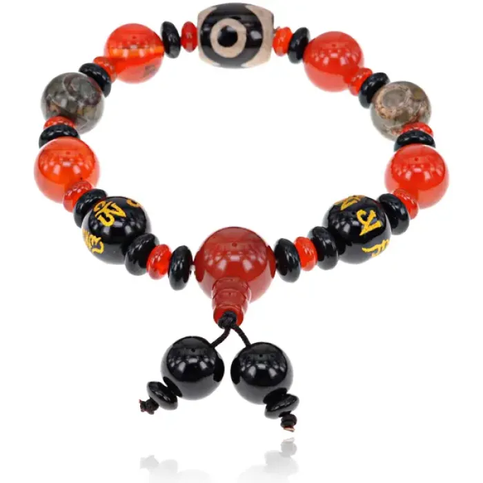 Браслет с бусинами Дзи 3 глаза, мантрами и Гуру-бусиной, натуральный агат BSDZ-027