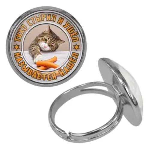 Безразмерное кольцо из бижутерного сплава с изображением под выпуклой стеклянной линзой.