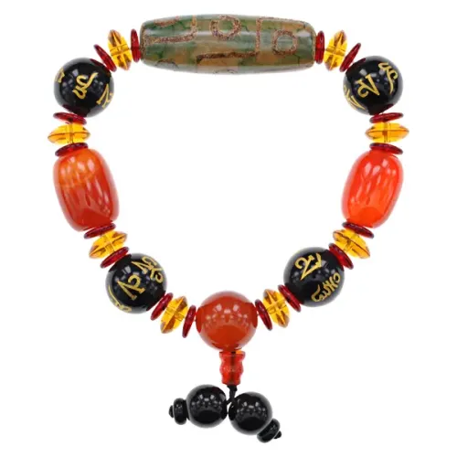 Браслет с бусиной Дзи 9 глаз, мантрами и Гуру-бусиной, натуральный агат BSDZ-031