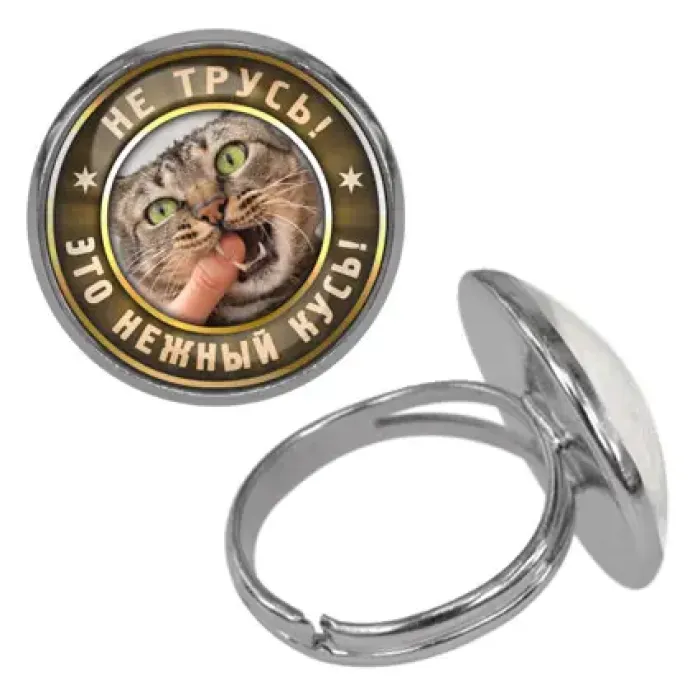 Безразмерное кольцо с изображением под выпуклой стеклянной линзой.