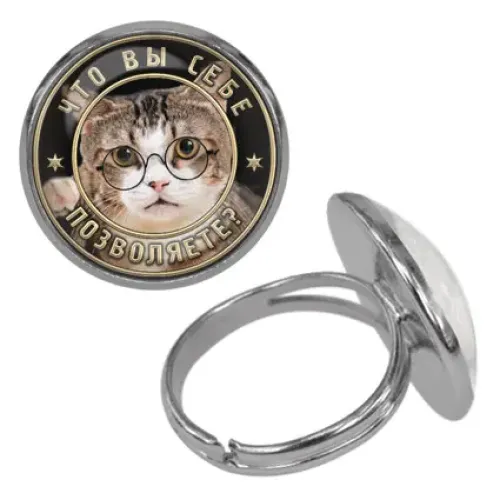 Безразмерное кольцо с изображением под выпуклой стеклянной линзой.
