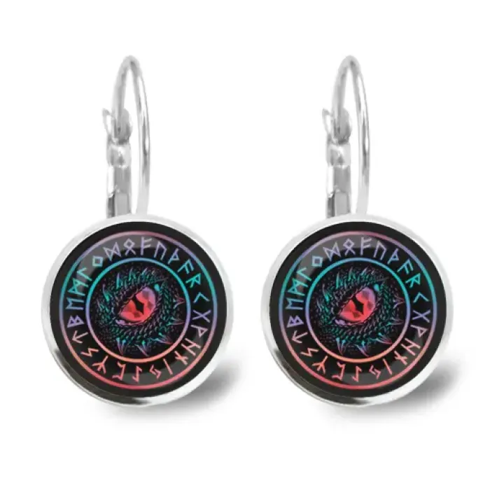 Серьги с изображением глаза дракона под выпуклой стеклянной линзой.