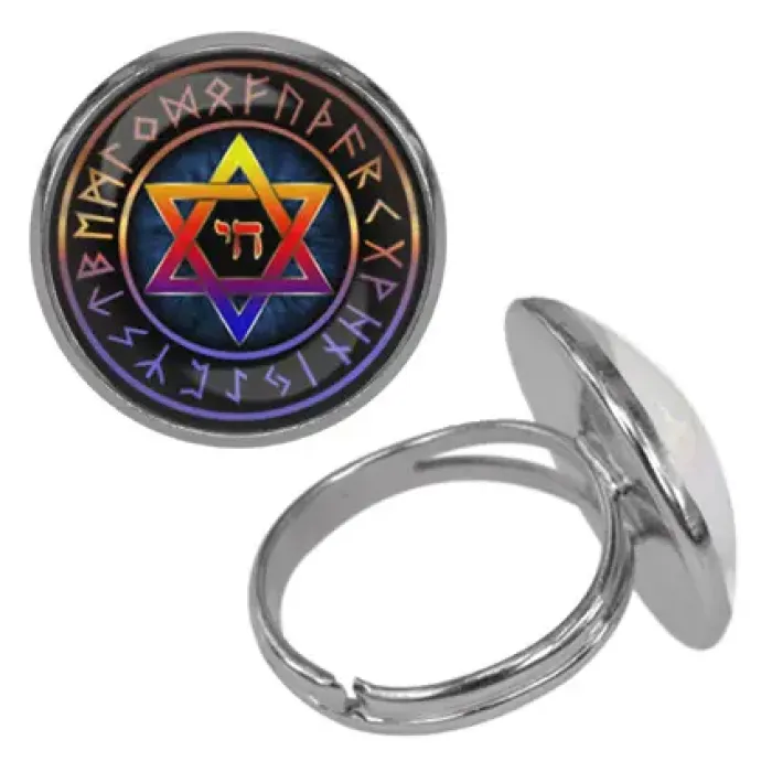 Безразмерное кольцо с изображением Звезды Давида. Изготовлено из бижутерного сплава.