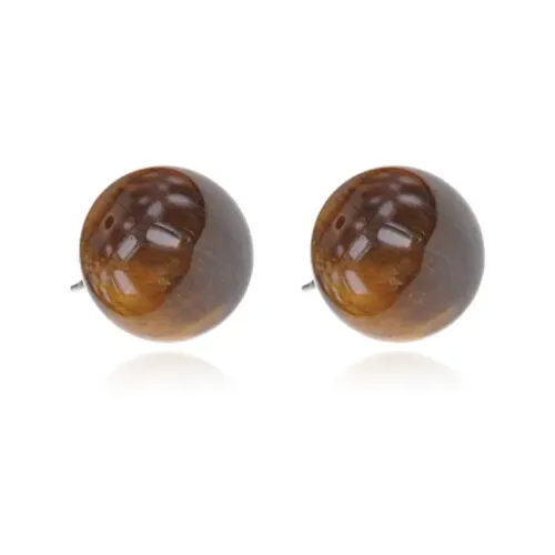 Серьги-пусеты из натурального камня тигровый глаз диаметром 12 мм.