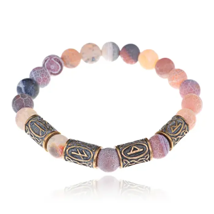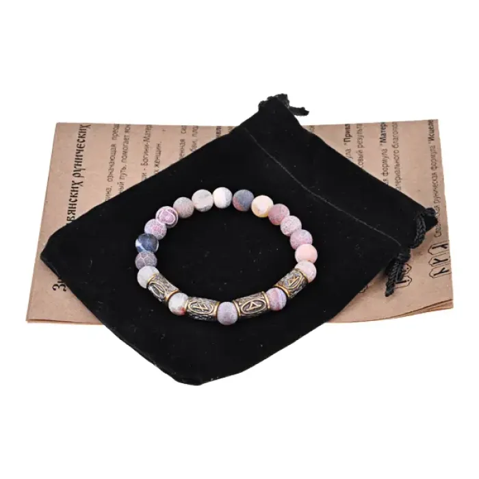 Славянский рунический браслет Благополучие и успех, 8мм, Африканский агат BSRS-016