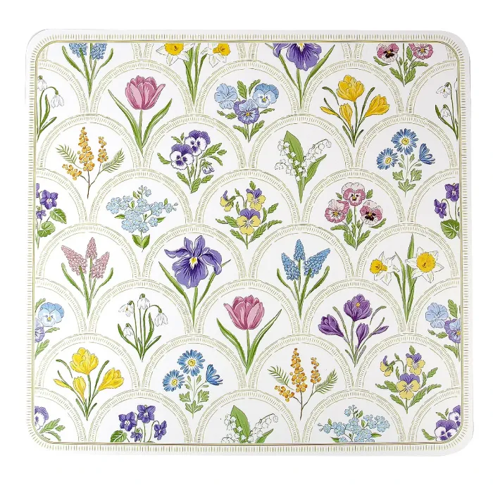 Салфетка имеет квадратную форму и изготовлена из прочных материалов, что обеспечивает долговечность использования. Дизайн с цветочным рисунком добавляет элегантности и подходит для различных событий. Плейсмат не требует специализированного ухода.