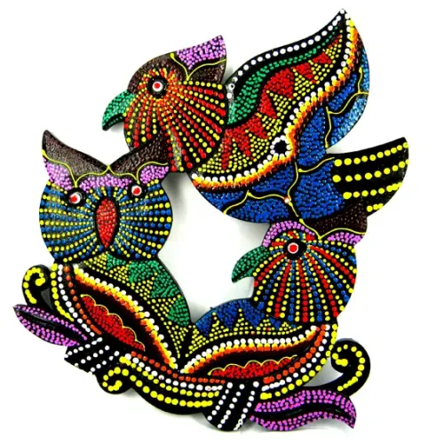 Настенное панно с изображением сов. Материал — дерево албезия, декорировано ручной точечной окраской.