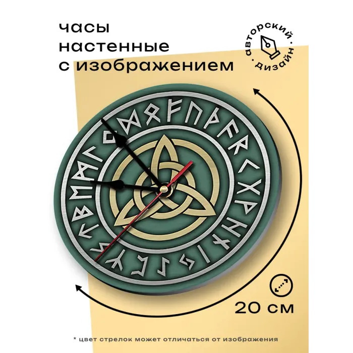 Настенные часы с циферблатом диаметром 20 см. Материал — вспененный пластик ПВХ, дизайн нанесён методом наклейки.