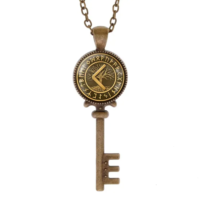 Кулон в форме ключа с выпуклой стеклянной линзой и покрытием под бронзу — это не просто украшение, а символ света и знания. Руна Кеназ олицетворяет творческую энергию и внутренний огонь, помогая раскрыть скрытые таланты и освещать путь в темноте.