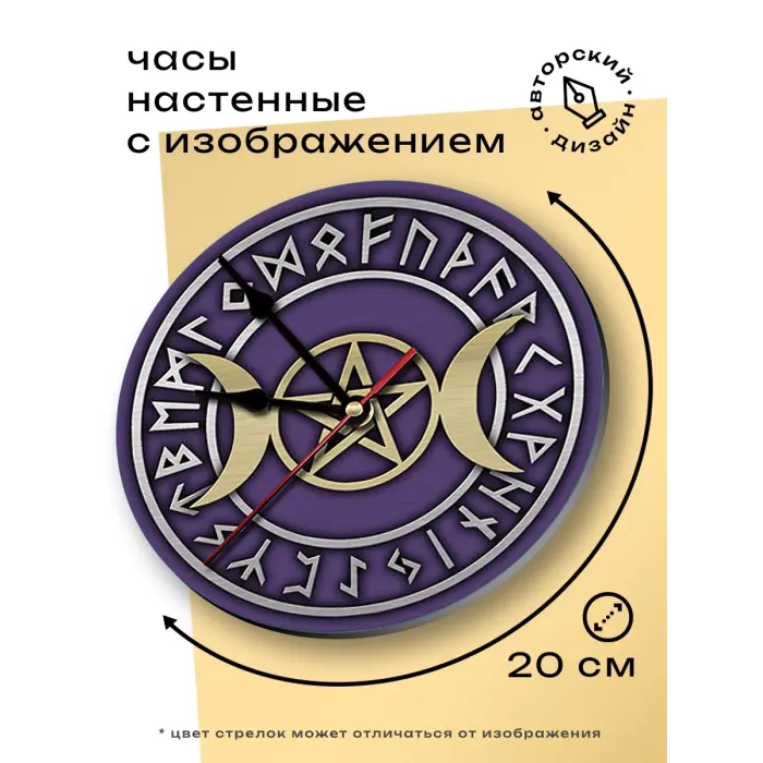 Настенные часы «Знак Богини» с циферблатом диаметром 20 см. Материал — вспененный пластик ПВХ.