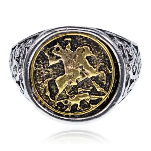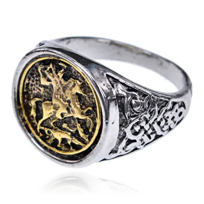 Кольцо с образом Георгия Победоносца. Изготовлено из бижутерного сплава с двухцветным покрытием.