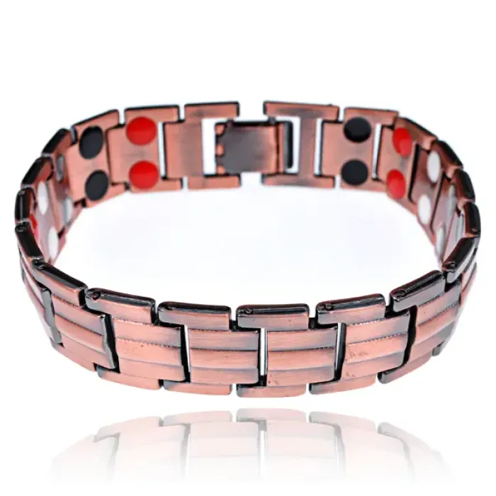 Магнитный браслет — стильный аксессуар с культурным значением. Изготовленный из качественной стали и покрытый медью, этот браслет сочетает в себе элегантность и прочность. Корбчатый замок обеспечивает надежное закрытие, а длина 20 см и ширина 1,5 см делают его удобным для ношения. Такой браслет может стать отличным подарком или дополнением к любому образу.
