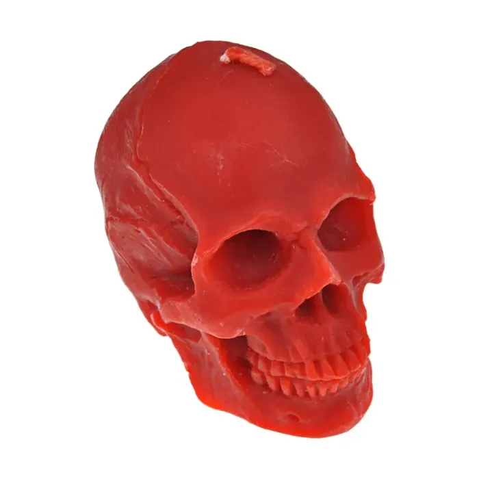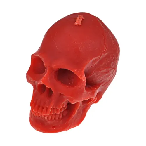 Свеча для интерьерного декора в форме черепа, изготовленная из воска, цвет красный.