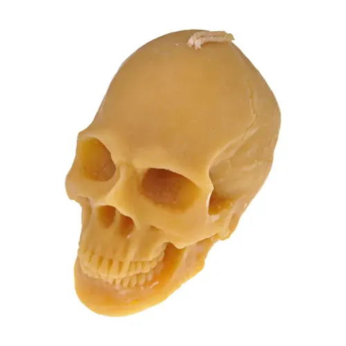 Свеча в форме черепа, изготовленная из воска. Цвет — жёлтый.