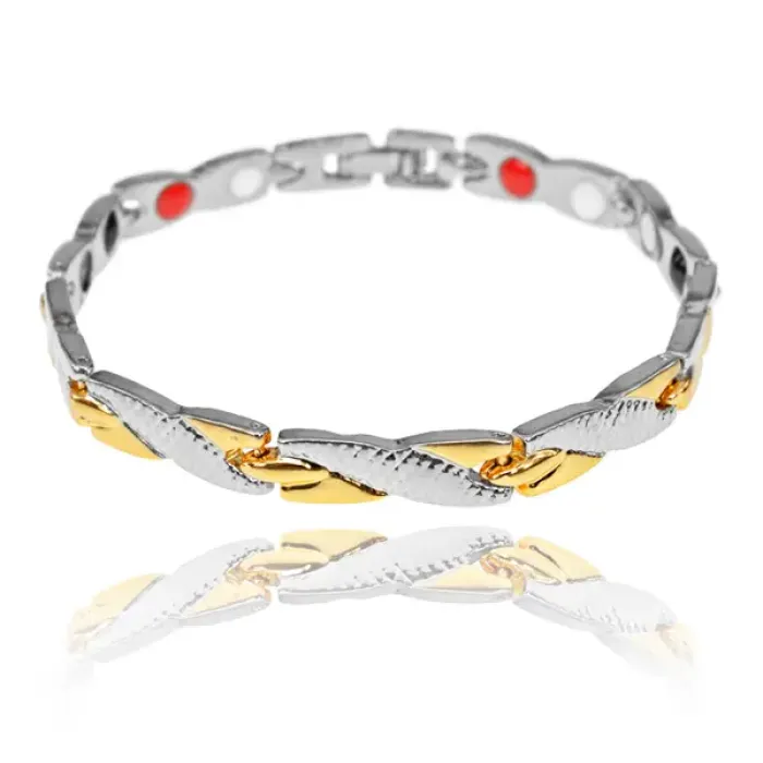 Магнитный браслет из стали серебряно-золотого цвета с коробчатым замком.