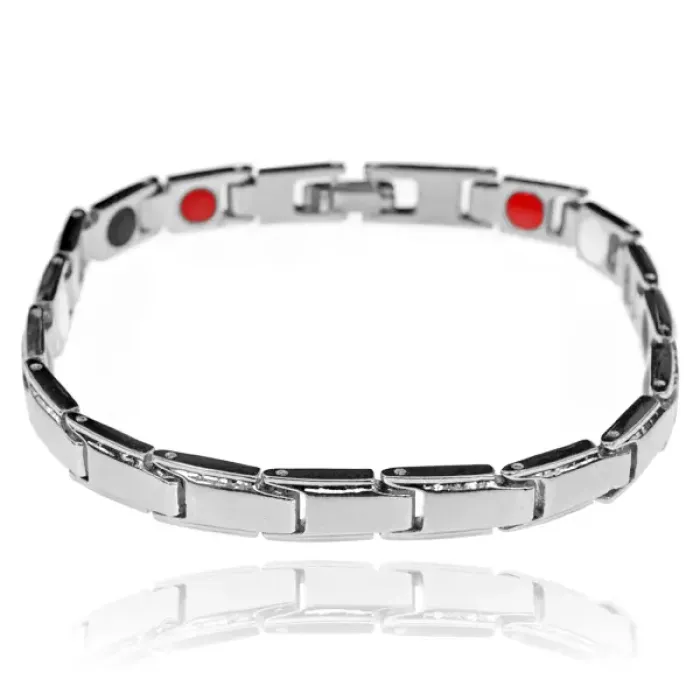Магнитный браслет из стали серебристого цвета с коробчатым замком.