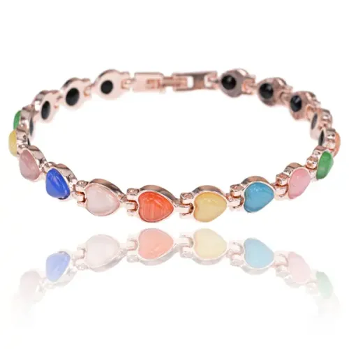 Металлический браслет (не магнитный) Сердце с кошачьим глазом, 20см BSM026