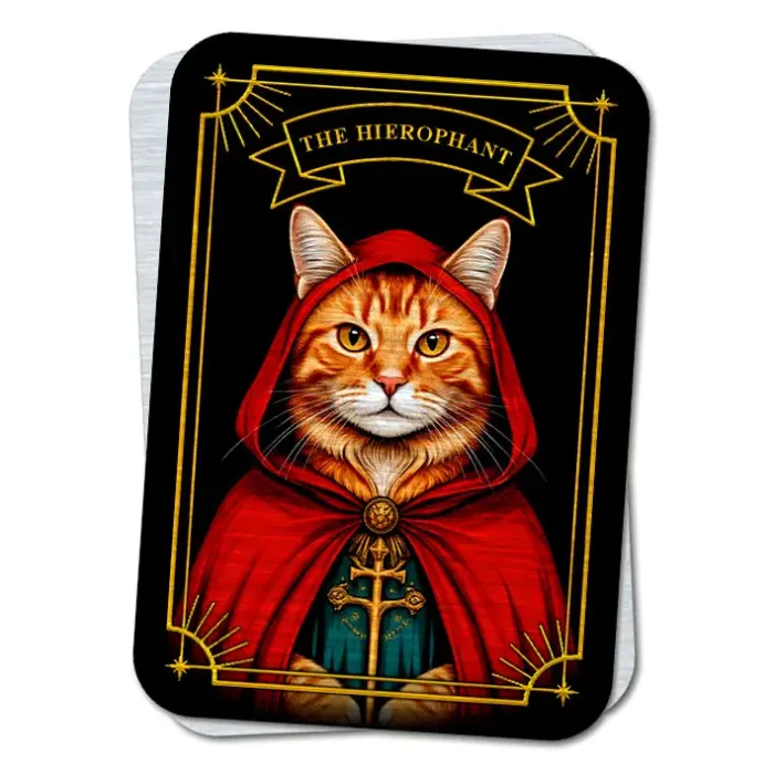 Кошачье Таро The Hierophant - Иерофант (Жрец) представляет собой уникальную магическую карту, символизирующую традицию, веру и духовное наставничество. Эта карта помогает следовать общепринятым нормам и ритуалам, что делает ее идеальным инструментом для тех, кто ищет гармонию в жизни.