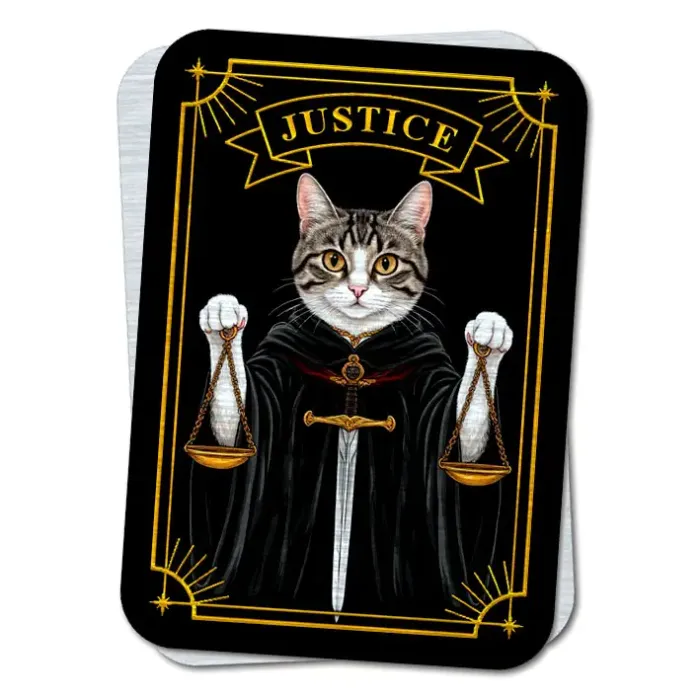 Кошачье Таро Justice - Справедливость символизирует истину, закон и карму. Этот магнит станет отличным напоминанием о важности ответственности за свои действия и поиске справедливости в жизни. Изготовленный из металла толщиной 0,45 мм, он имеет размеры 5,6х8 см и поставляется в пакетике с описанием. Такой сувенир не только украсит пространство, но и вдохновит на размышления о равновесии и принятии решений. В культуре Таро данный аркан часто ассоциируется с необходимостью честного подхода к жизни.