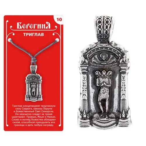 Амулет «Триглав» следит за тремя царствами: Правью, Явью и Навью. Его сила способна преодолеть любые преграды на пути к успеху. Этот амулет приносит защиту от несправедливости и врагов, а также дарует богатство, силу и знание.