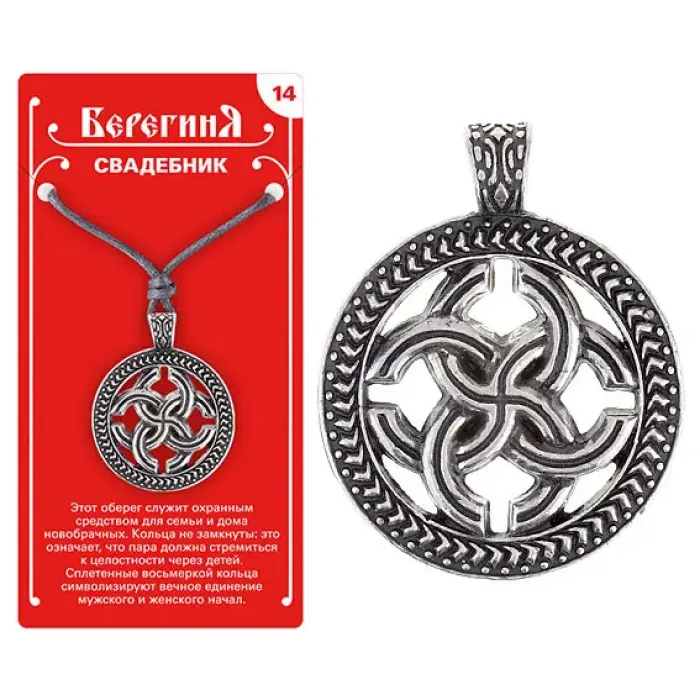 Амулет защитный №14 «Свадебник» из олова — это уникальный оберег, созданный для защиты семейного счастья новобрачных. Он символизирует вечное единение и служит мощным талисманом, который привлекает благополучие и согласие в дом.
