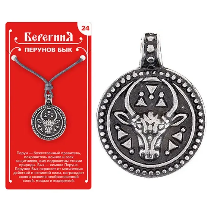 Амулет защитный №24 «Перунов Бык» — это мощный талисман, созданный для защиты от негативных воздействий и дарования внутренней силы. Вдохновленный образом Перуна, божественного покровителя воинов, этот амулет символизирует могущество и стойкость.