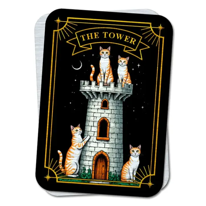 Кошачье Таро The Tower - Башня представляет собой уникальный магнит, который символизирует внезапные изменения и освобождение от иллюзий. Этот предмет не только украсит пространство, но и станет напоминанием о важности перемен в жизни.