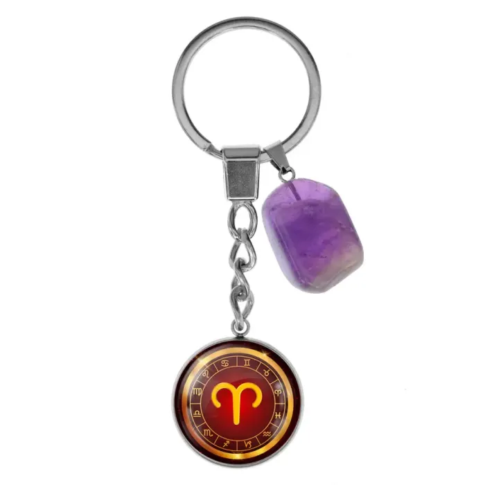 Брелок из нержавеющей стали Овен с натуральным камнем Аметист BKM-001