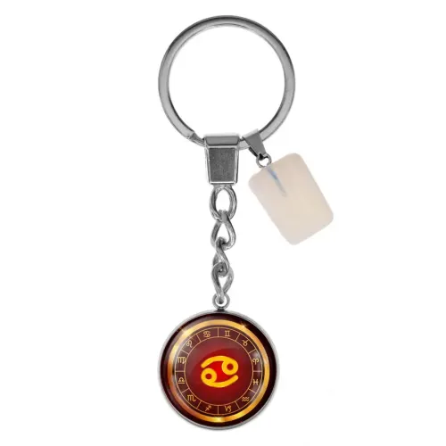 Брелок из нержавеющей стали с изображением знака зодиака Рак и синтетическим камнем Лунный камень.