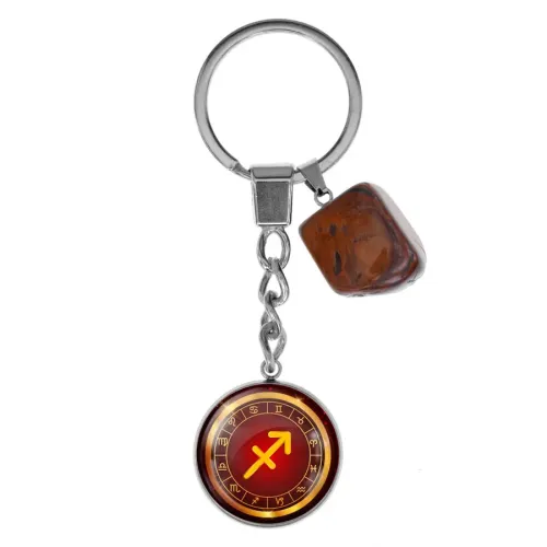 Брелок из нержавеющей стали Стрелец с натуральным камнем Тигровый глаз BKM-009