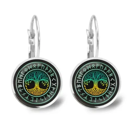Серьги с изображением дерева жизни под выпуклыми стеклянными линзами.