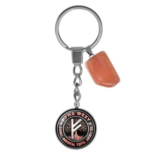 Сердолик традиционно ассоциируется с защитой от недругов и негативных энергий, а руна Феху символизирует богатство и благополучие. Этот брелок станет не только стильным дополнением к ключам, но и источником положительной энергии.