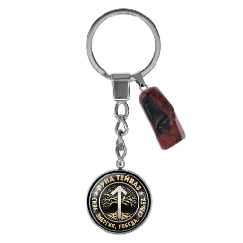 Брелок из нержавеющей стали Тейваз с натуральным камнем Красная яшма — это не только стильный аксессуар, но и символ силы и защиты. Яшма традиционно ценится за свои свойства очищения и стимулирования, а также приносит удачу в карьере и личной жизни. Каждый камень уникален благодаря индивидуальной галтовке, что делает каждый брелок неповторимым.