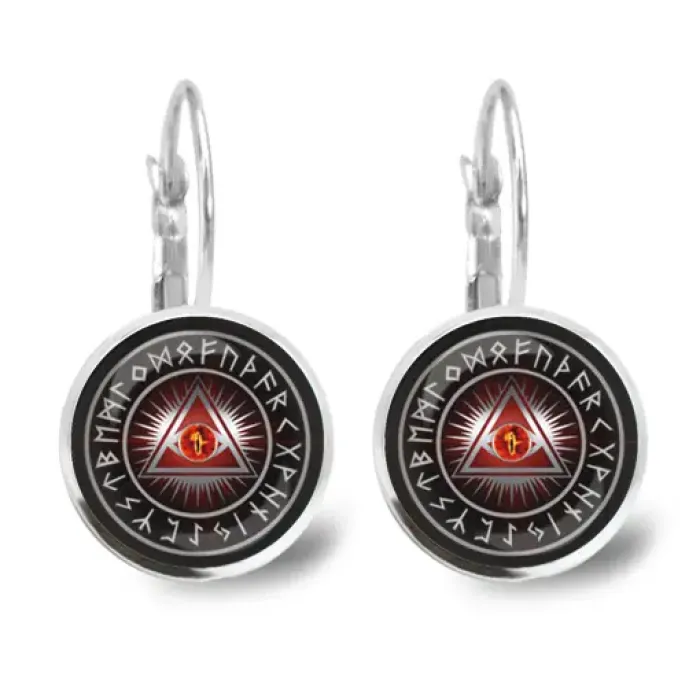Серьги Всевидящее око — бижутерный аксессуар с изображением символа под выпуклой стеклянной линзой.