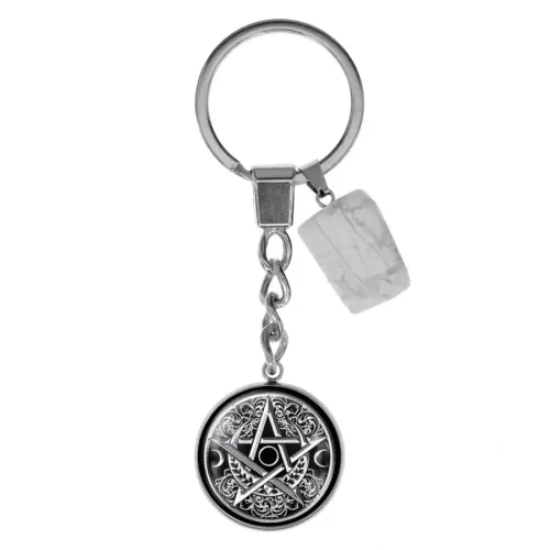 Брелок из нержавеющей стали Лунная пентаграмма с натуральным камнем Кахолонг BKM-048