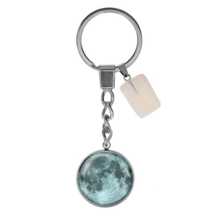 Брелок из нержавеющей стали Луна с синтетическим камнем Лунный камень BKM-051