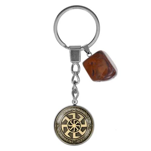 Брелок из нержавеющей стали Коловрат с натуральным камнем Тигровый глаз BKM-054