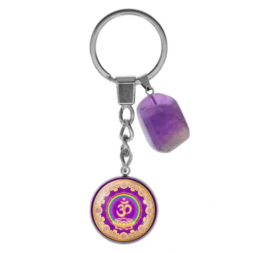 Брелок из нержавеющей стали Ом с натуральным камнем Аметист BKM-055