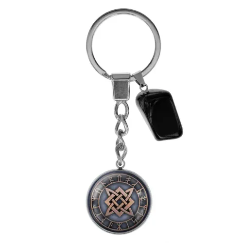 Брелок из нержавеющей стали Звезда Руси с натуральным камнем Черный агат — это не только стильный аксессуар, но и символ финансового успеха и личного благополучия. Чёрный агат традиционно ценится за свою способность обеспечивать энергетическую защиту, умиротворение и покой. Он помогает справляться с негативом, завистью и стрессами, создавая вокруг своего владельца ауру спокойствия.