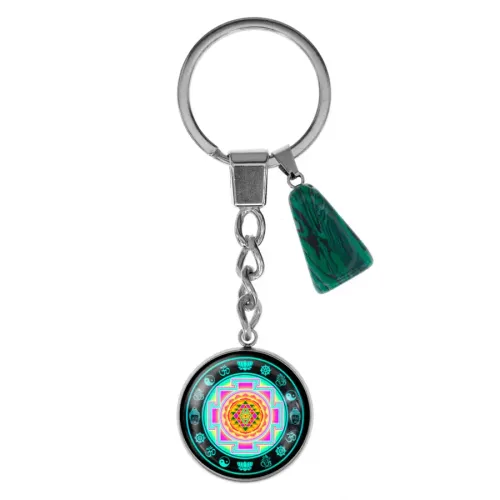 Брелок из нержавеющей стали Шри Янтра с синтетическим камнем Малахит BKM-064
