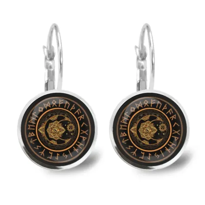 Серьги с изображениями солнца и луны диаметром 18 мм под выпуклыми стеклянными линзами.
