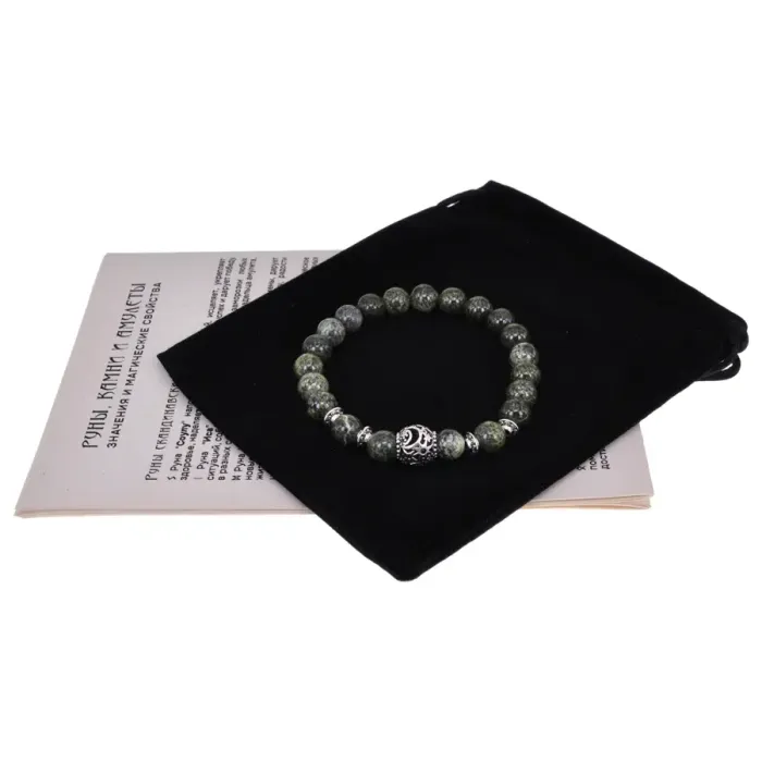 Змеевик традиционно используется в магии как камень силы и интуиции. Он помогает предвидеть опасности и развивает интеллектуальные способности владельца. Этот браслет станет не только красивым аксессуаром, но и источником вдохновения для тех, кто ищет внутреннюю силу.