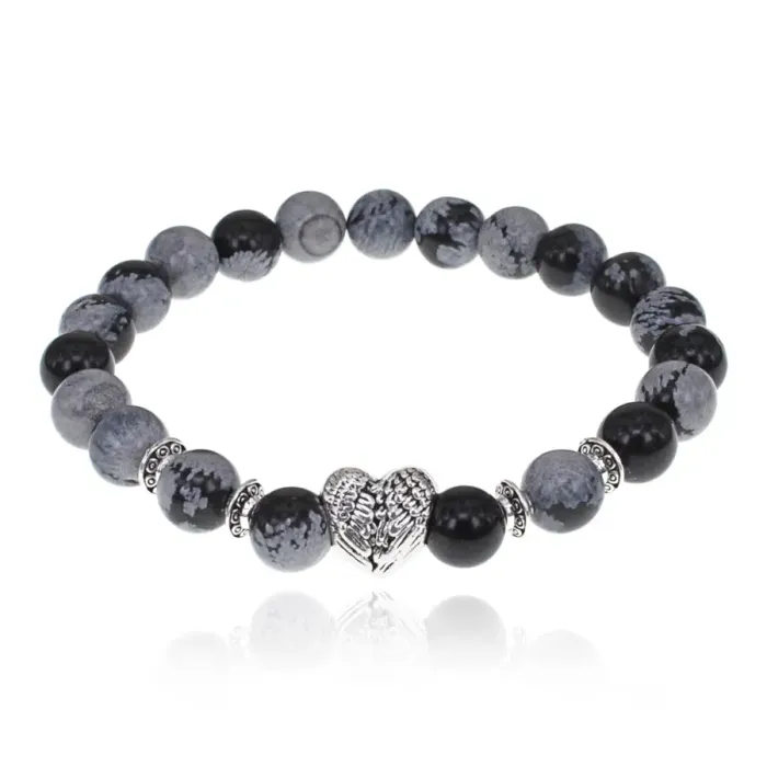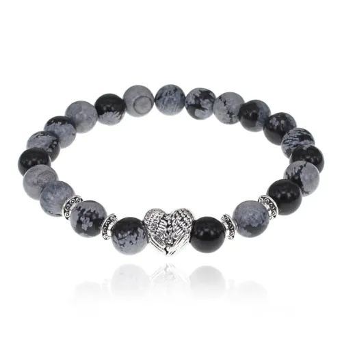Браслет Сердце с нат.камнем Снежный обсидиан 8мм BSH-13-10